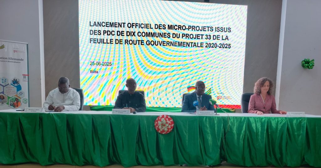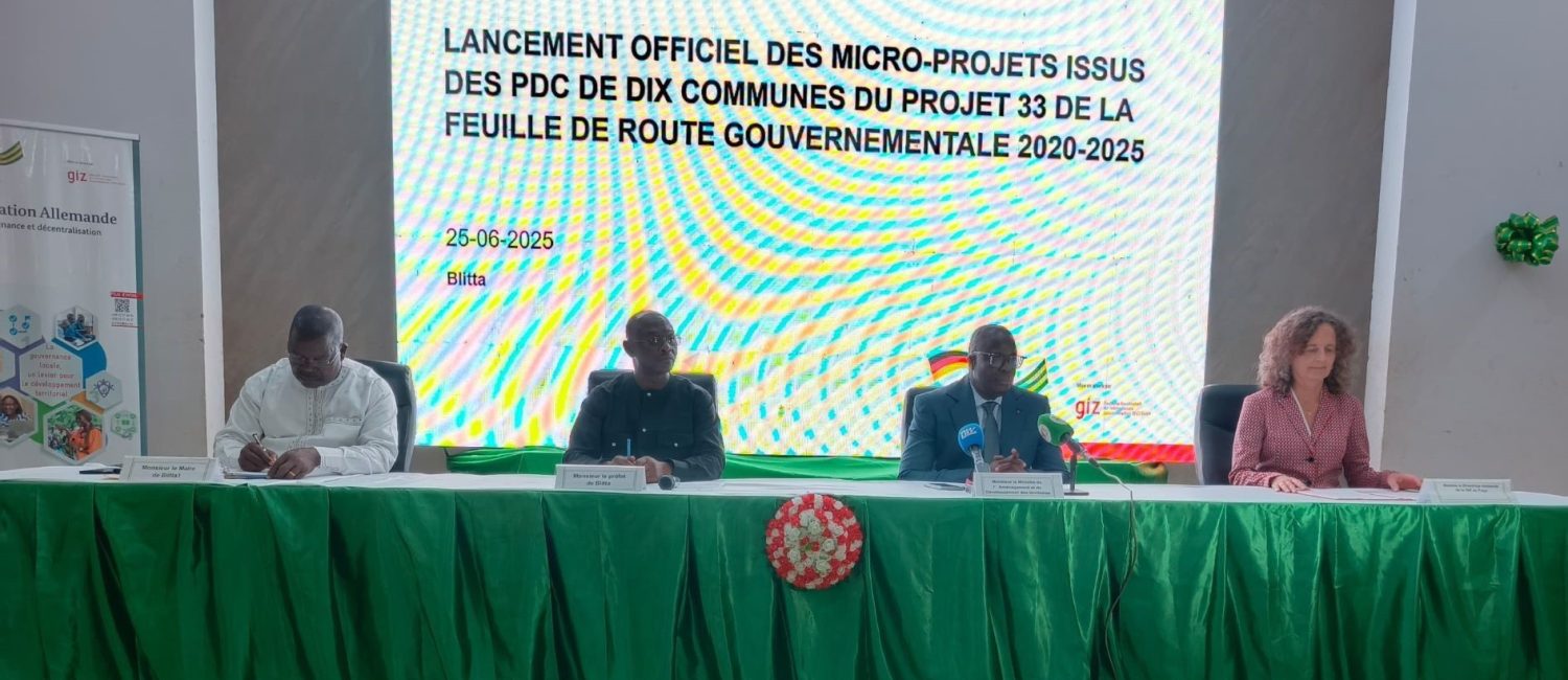 La commune de Blitta 1 a accueilli le 25 juin 2025, l’atelier de lancement officiel de la mise en œuvre des microprojets issus des Plans de Développement Communal (PDC) des collectivités Pilotes du projet P33 de la feuille de route gouvernementale dont la Commune Agou 1. C’est le ministre de l’aménagement et du développement des territoires, M. GOMADO Koamy Gbloèkpo qui a donné le ton dans cette étape cruciale dans la concrétisation des ambitions de développement local au Togo.